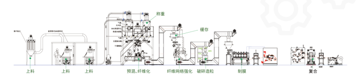 高能數造干法電極中試線是銜接鋰電池干法電極實驗室研發與規模化量產的百兆瓦級全流程中試樞紐,覆蓋“物料精準投料→纖維化處理→密閉輸送→纖維網絡強化→造粒除塵→成膜→復合收卷”七大核心工序,實現“原料入→成品極片出”一站式生產,可適配百兆瓦級干法電極中試需求,同時支持正極、負極及電解質材料的規模化處理,為企業提供從實驗室配方驗證到量產工藝優化的全環節中試解決方案。另外,中試線設備先進,定制化核心設備 + 智能化數字控制,保障了生產靈活性穩定。