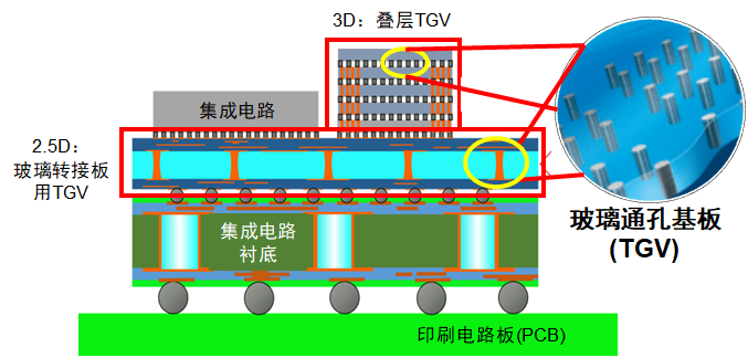 先進封裝TGV示意圖 來源:中國建筑材料科學研究總院