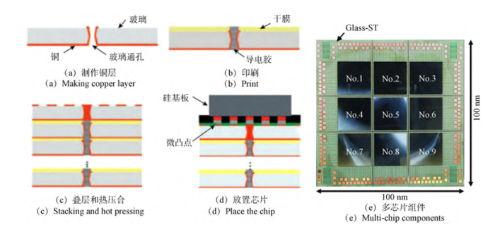 多芯片封裝系統工藝流程以及基于玻璃基板的多芯片組件 來源:IWAI.Multilayer glass substrate with high density via structure for all inorganic multi-chip module