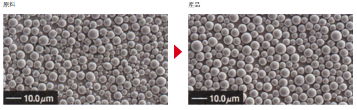 通過粉碎機及分級機加工得到的粉體,不僅被用于制作面粉、面包粉等日常食品,還廣泛應用于液晶電視、顯示器等家用電器,以及3D打印機的先進材料中。以顯示器為例,其內部需要由大小均勻的微小顆粒組成均勻的陣列,只有當電流通過這些顆粒時,才能呈現出高清晰度的圖像。近年來,隨著對電子材料、金屬粉體、無機功能粉體及高性能塑料需求的增加,日清制粉在上述諸多領域的分級精度獲得了客戶的高度評價。