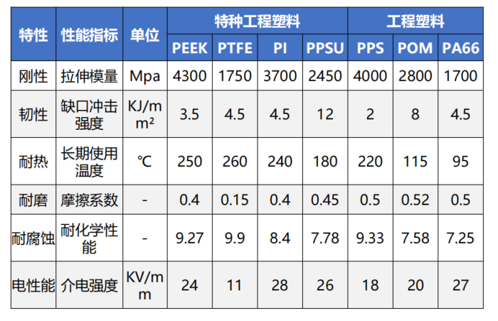 PEEK與傳統(tǒng)合金輕量化對(duì)比 來源:君華股份