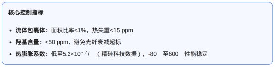 在1800℃高溫與5MPa高壓環(huán)境下,精硅科技采用化學(xué)氣相沉積(CVD)與等離子體凈化聯(lián)用技術(shù),讓高純硅源重新結(jié)晶。這一過程不僅徹底消除傳統(tǒng)熔融工藝中難以避免的內(nèi)部氣泡,更通過原子級擴(kuò)散使雜質(zhì)均勻分布,最終產(chǎn)品的羥基含量<0.5ppm,熱膨脹系數(shù)低至5.5×10??/℃,滿足光纖陀螺儀在-55℃至125℃極端環(huán)境下的穩(wěn)定性要求。