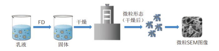 噴霧冷凍干燥過程包括霧化、冷凍和干燥三部分。霧化是指將液體通過噴嘴分解為細小液滴,直接影響最終的顆粒尺寸分布;冷凍是指讓霧化的液滴接觸低溫冷凍液(液氮等)以獲得具有均勻冰結晶的冷凍液滴;干燥是將冷凍液滴中的冰晶直接升華形成干燥顆粒的過程。