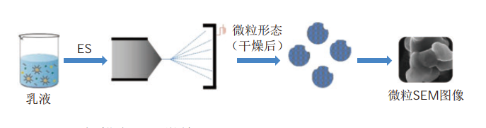 靜電噴霧是借助高壓電場使液體霧化形成小液滴,溶劑蒸發后形成固體顆粒的技術。該技術要求溶液濃度較低,溶液濃度過高會導致靜電紡絲,從而產生纖維而不是顆粒。