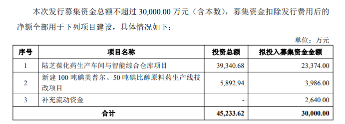 此次募資的主要用途包括:投資陸芝葆化藥生產車間與智能綜合倉庫項目,以提升生產能力和倉儲智能化水平;新建100噸碘美普爾和50噸碘比醇原料藥生產線技改項目,以擴大原料藥生產規模并提升技術水平;剩余部分資金將用于補充公司流動資金,以增強公司資金流動性,支持日常運營及未來業務發展。