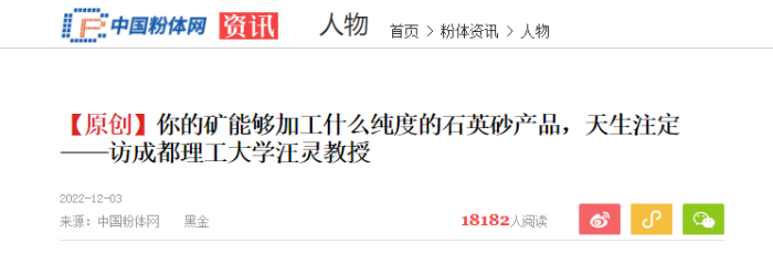 中國粉體網(wǎng)訊 2022年,在由中國粉體網(wǎng)主辦的“第六屆全國石英大會”上,成都理工大學(xué)汪靈教授首次以《石英的提純定律與高純石英原料品級劃分》為題做了大會報告,會后,汪靈教授接受了中國粉體網(wǎng)的獨(dú)家專訪,本次專訪以《你的礦能夠加工什么純度的石英砂產(chǎn)品,天生注定》為題一經(jīng)發(fā)布即引起業(yè)內(nèi)巨大反響。
