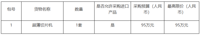 項目名稱:中國科學院廣州生物醫藥與健康研究院超薄切片機采購項目
