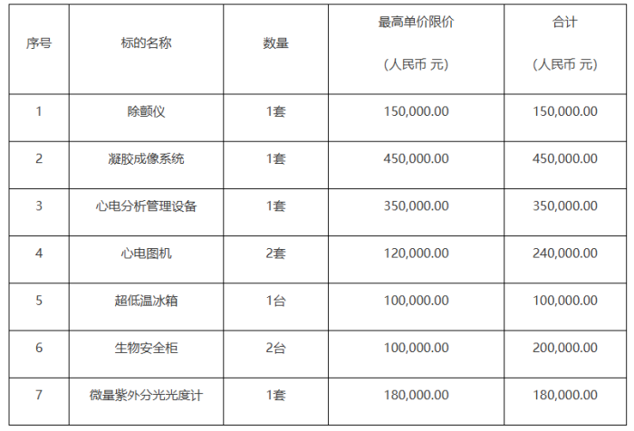 ②采購內容基本情況:采購凝膠成像系統等設備一批,具體采購內容詳見《用戶需求書》。