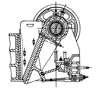 簡擺顎式破碎機:具有前后兩個肘板,動顎上各點的運動軌跡為圓弧的顎式破碎機。