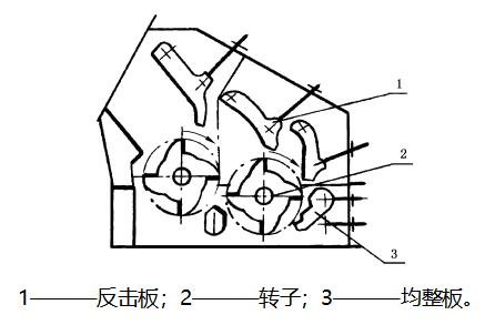 異向雙轉子反擊式破碎機:兩個轉子安放在同一水平面上轉向相反的雙轉子反擊式破碎機。