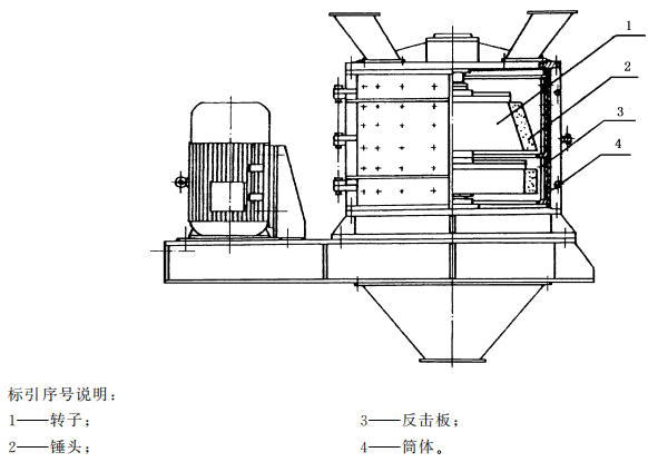 利用剛性固定在轉子上高速旋轉的板錘擊碎物料的機械。