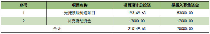 本次募集資金扣除發行費用后,5.3億元用于光掩膜版制造項目(項目總投資19.31億元,剩余資金由公司自籌),1.7億元用于補充流動資金,以緩解業務擴張帶來的資金壓力。