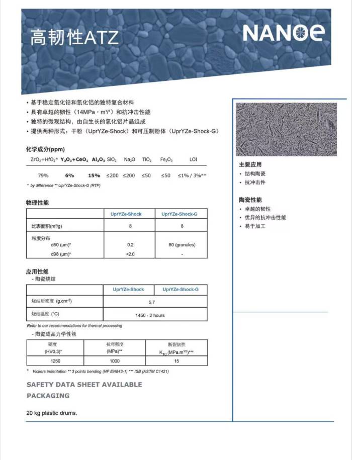 不想放棄氧化鋯的高韌性優(yōu)點,同時還要彌補其強度、硬度等方面的不足,法國NANOE公司選擇采用氧化鋁來增強氧化鋯基體的方法,推出了適用于定位銷的高韌性ATZ粉體。