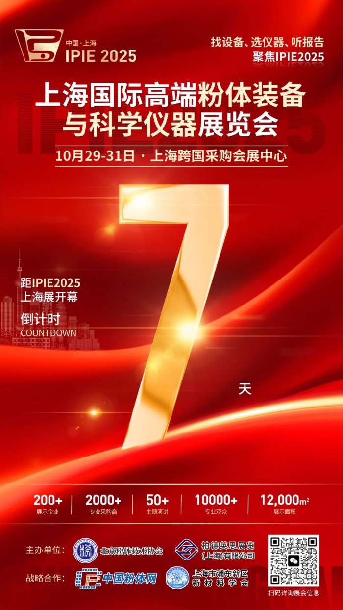 2025IPIE上海國際高端粉體裝備與科學儀器展覽將于10月29-31日在上海跨國采購會展中心舉辦!IPIE2025是由北京粉體技術協會與柏德英思展覽(上海)有限公司聯合主辦,并與上海市浦東新區新材料協會、中國粉體網達成戰略合作,共同打造的粉體裝備與科學儀器行業應用領域的一站式商貿采購與交流平臺。