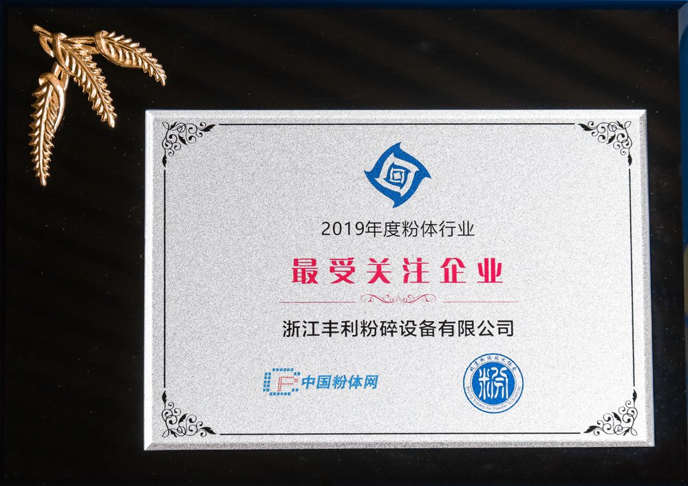 日前,2019年度粉體行業年度獎項評選揭曉,享有“中國粉碎機專家”美譽的浙江豐利粉碎設備有限公司榮獲“最受關注企業”稱號。這是浙江豐利繼2013年、2015年HWV系列旋風磨連續兩屆上榜、2017年CGM1000超細輥壓磨獲“最受關注產品”、2018年獲“最受關注品牌”之后,再度獲此行業殊榮。