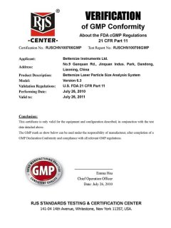 百特激光粒度儀獲美國FDA 21 CFR Part 11 認證