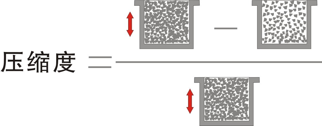 松裝密度:在標(biāo)準(zhǔn)規(guī)定的下落距離或狀態(tài)下,粉體填滿標(biāo)準(zhǔn)容器并刮平后質(zhì)量與容積之比叫松裝密度。它反映常規(guī)形態(tài)下單位體積的容器所盛裝粉體的重量。振實(shí)密度:以標(biāo)準(zhǔn)方法將顆粒填充到容器中,讓容器按一定的振幅和頻率上下振動(dòng),排除粉體中的空氣,直到達(dá)到標(biāo)準(zhǔn)規(guī)定的時(shí)間或振動(dòng)次數(shù)后刮平,這時(shí)的粉體質(zhì)量與容積之比叫振實(shí)密度。振實(shí)密度反映粉體在排除空氣后單位體積的容積所盛粉體的重量。松裝密度和振實(shí)密度參數(shù)常常用于存儲(chǔ)粉體的容器、袋及料倉的設(shè)計(jì)工作。壓縮度:壓縮度是指粉體的振實(shí)密度與松裝密度之差與振實(shí)密度之比,反應(yīng)兩種狀態(tài)下粉體體積減小的程度。