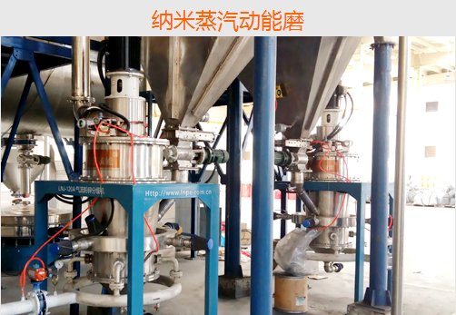 納米蒸汽動能磨是流能公司自主研發(fā)的一種利用物理方法在完全干式的狀態(tài)下加工納米粉體的新設(shè)備,為納米粉體的加工提供了一種新途徑。其以高壓蒸汽為粉碎動力,帶動物料高速運動,高速運動物料間經(jīng)相互碰撞粉碎,粉碎后經(jīng)內(nèi)置高精度渦輪分級機分級后,進入高溫袋式收集器收集。納米蒸汽動能磨噴射速度可達1200m/s,為傳統(tǒng)氣流磨500 m/s的2倍以上,而其顆粒的粉碎強度更是增加了4倍以上,與氣流磨相比,顆粒易于被粉碎到納米級別。由于蒸汽的音速比空氣更高,可增加分級機葉片的外圍速度,從而增加加速作用力,達到納米顆粒分級的需求。在蒸汽條件下,可避免靜電團聚,分散性好,大大提高了分級效率與分級精度。