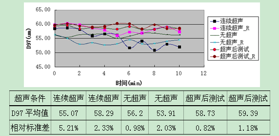 表4:不同超聲條件對D97測量的影響
