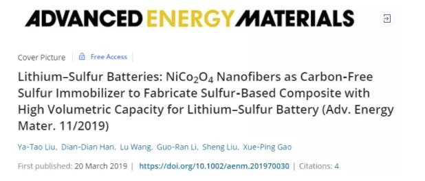 能量密度和循環穩定性是鋰硫電池實用化過程中的巨大挑戰。通常采用輕質的非極性碳材料作為硫載體,但鋰硫電池的循環穩定性和體積能量密度依然不夠理想。本工作以質地較重的鈷酸鎳納米纖維作為非碳硫載體,構筑了復合硫正極材料。