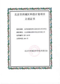 2011年末,北京精微高博科學技術有限公司再次得到政府的支持,喜獲西城區科委頒發的“西城區科技計劃項目立項證書”。公司自主研發的比表面及孔徑分析儀具有獨特的創新性,多項技術在國內同行業產品中處于領先地位,總體指標達到國際先進水平。