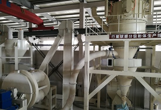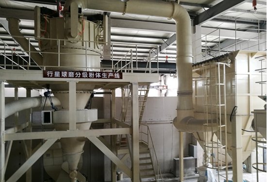 該生產線由臥式行星超細球磨機和大型臥式微米分級機構成。行星磨與分級機組成閉路粉碎分級系統,行星磨內物料在離心力場中(3~20g的離心加速度)中受到比球磨機大3~20倍沖擊力,與球磨機閉路粉碎分級系統相比,粉磨能耗下降30%左右。超細粉體產量達1500~8000kg/h,粒度分布窄,粒徑可在d97=2.5-15μm范圍選用。該生產線運行在閉環中進行,負壓輸送,無粉塵,采用先進的觸摸屏,可編程控制器(PLC),實現了自動化控制。產品廣泛應用于非金屬礦、有色金屬尾礦、鋰電池材料、化工、陶瓷等領域。