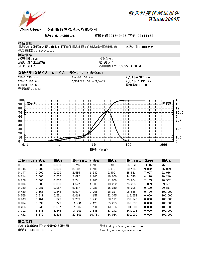 樂平特微新材料有限公司現(xiàn)與濟(jì)南微納合作使用winner2000通過對產(chǎn)品的測試分析,為品質(zhì)檢驗及優(yōu)化提供技術(shù)依據(jù)。以下為聚四氟乙烯測試報告:
