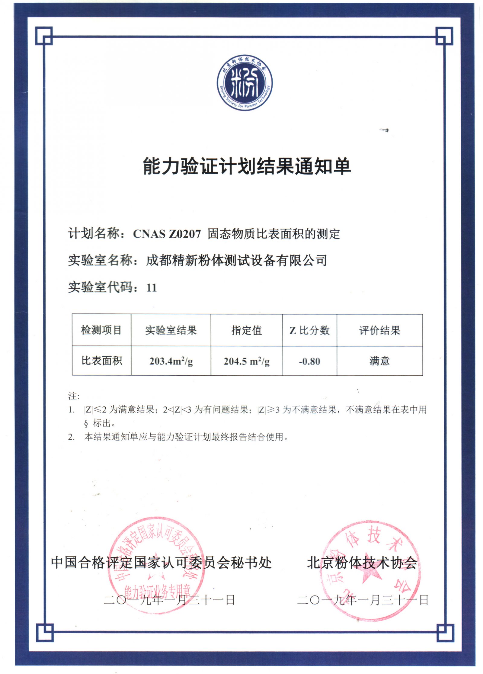 成都精新JB-2020比表面積測(cè)試儀在2018年組織的驗(yàn)證評(píng)定中,測(cè)試值為203.4㎡/g,對(duì)比樣品的指定值為204.5㎡/g,絕對(duì)偏差為-0.80,所測(cè)結(jié)果與標(biāo)樣指定值誤差極小,評(píng)價(jià)結(jié)果為“滿意”。成績(jī)進(jìn)一步證明JB-2020比表面積測(cè)試儀的穩(wěn)定性和重復(fù)性極高,誤差小,適合測(cè)量各種行業(yè)粉體和固體材料的比表面積,給各行業(yè)用戶提供質(zhì)量保證的依據(jù)。