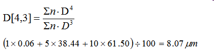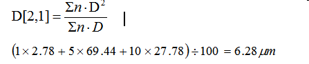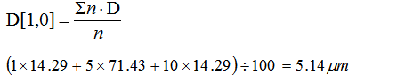 ⑽ 平均粒徑:所測顆粒的平均粒徑值。平均粒徑可用個數平均粒徑D[1,0]、直徑(長度)平均粒徑D[2,1]、面積平均粒徑D[3,2]和體積平均粒徑D[4,3]表示。為便于理解,舉例如下: