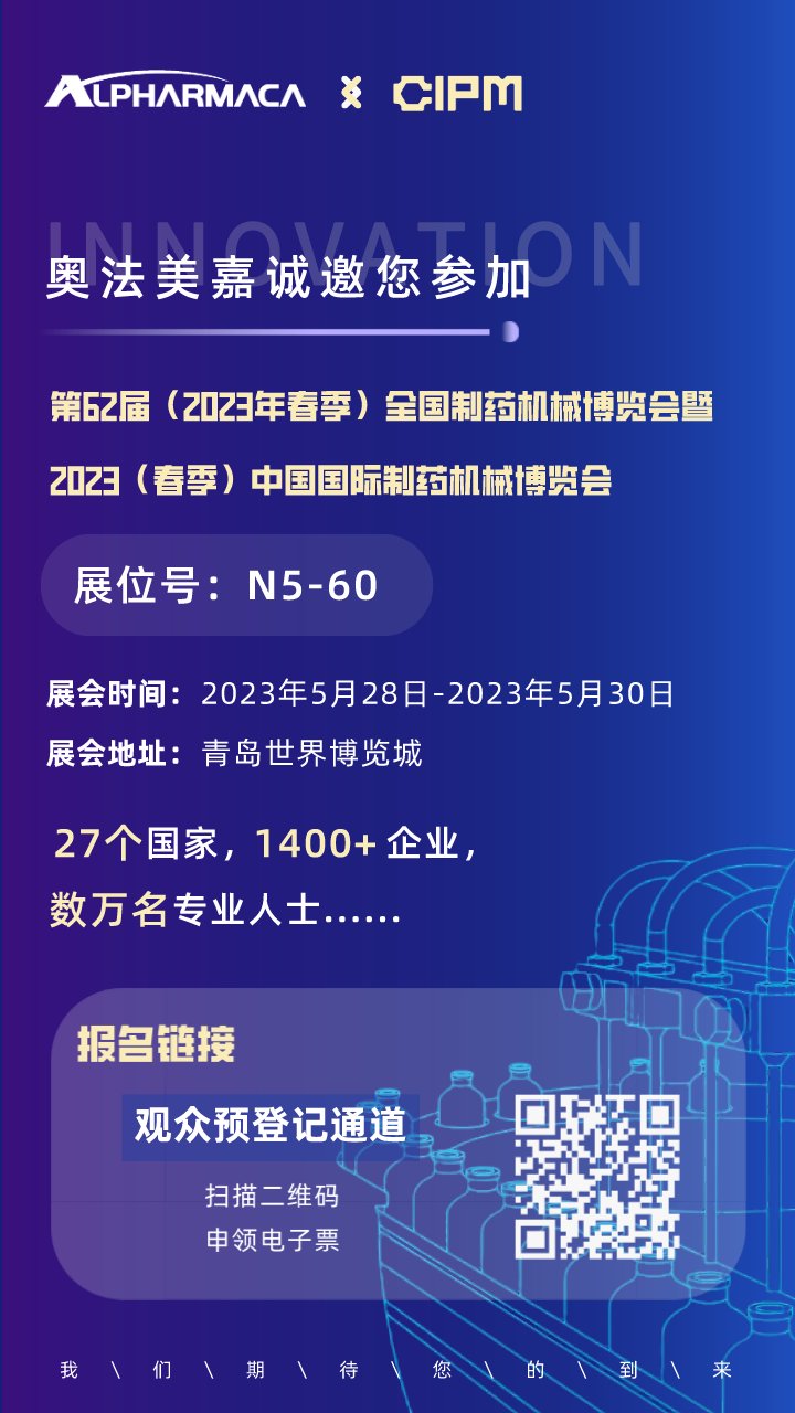 CIPM第62屆(2023年春季)全國制藥機械博覽會暨2023(春季)中國國際制藥機械博覽會將于2023年5月28至30日在青島世界博覽城展館舉行。屆時,粒度專家奧法美嘉將在N5-60展位恭候大駕,期待您的光臨!