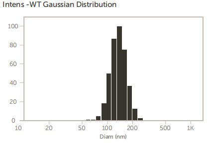 在加州大學(xué)戴維斯分校上制備和研究的陽離子脂質(zhì)體含有陽離子脂質(zhì)DOTAP,用于微RNA的包封。脂質(zhì)體的大小是至關(guān)重要的,因為最終這些脂質(zhì)體被靜脈注射到小鼠體內(nèi)。 因此,最終尺寸不應(yīng)大于100nm左右。這些陽離子包覆脂質(zhì)體的尺寸結(jié)果如圖11所示。