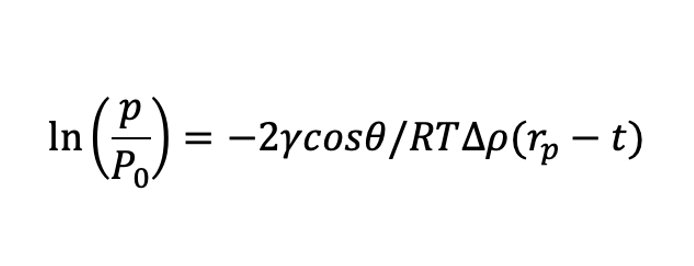 特別的,當孔的尺寸為介孔時(2-50 nm),吸附質氣體由于介孔的毛細管凝聚作用,會在已經存在吸附層的孔道內發生液化凝聚,這個毛細管凝聚過程可由簡單修正過的 Klevin 方程描述: