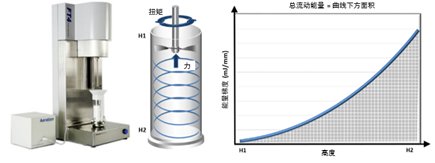 *FT4粉體流變儀:流動能測試過程及流動能結果示意圖