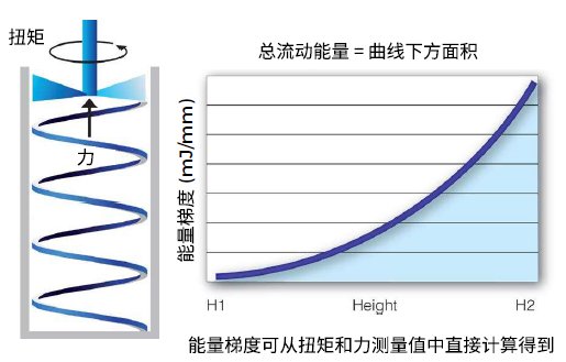 在本研究中,使用動態方法測量粉體樣品結塊前后的流動能量,以量化流動性的改變。流動能量通過具有專利的測量原理確定,測量特殊形狀的槳葉沿著預設路徑在精確定量的粉體中運動的阻力,得到的扭矩和力的測量值被轉換成流動能量[1]