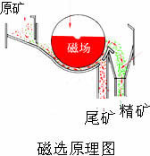 精選錳礦的磁選機磁選法中最主要的是磁選機。磁選機的選礦原理如下圖: