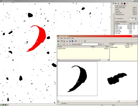 QICPIC可以從測(cè)試的圖片數(shù)據(jù)庫(kù)中,使用自定義過(guò)濾條件鑒別咖啡銀皮的數(shù)量,如使用 EQPC徑 >1,000 μm 來(lái)過(guò)濾出超出該規(guī)格的顆粒數(shù)量。