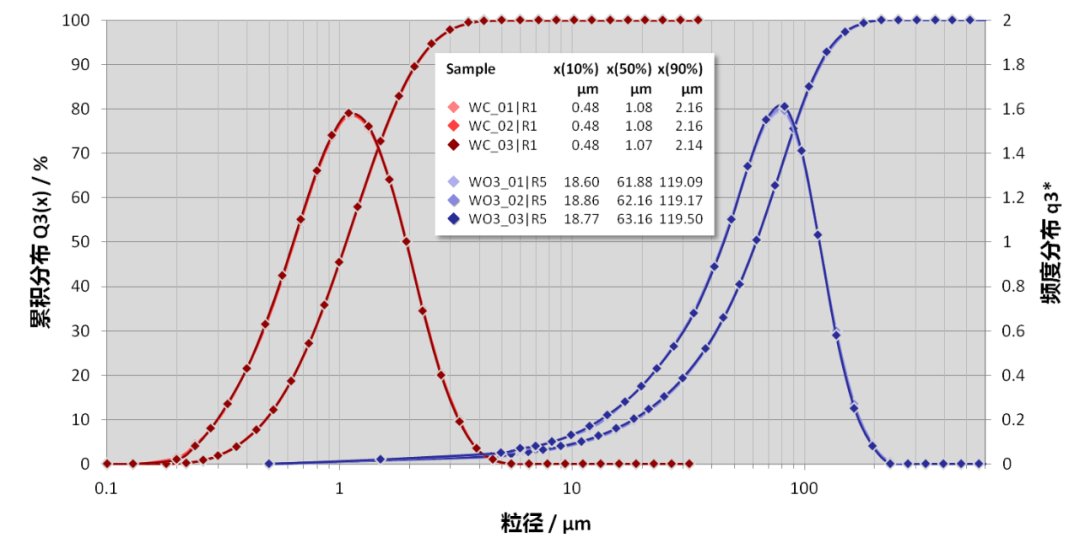 紅色:干法檢測,重復(fù)性佳,分散效果好