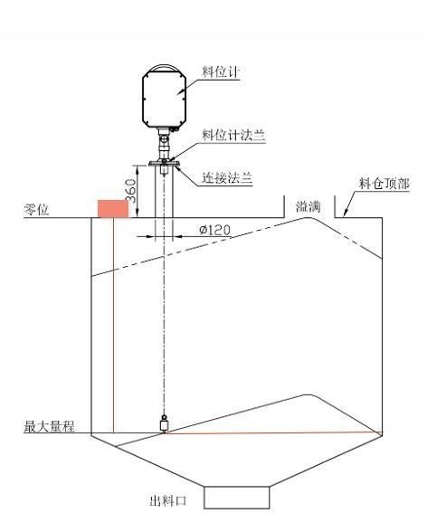 下圖為筒倉頂部安裝的重錘料位計+阻旋開關安裝圖: