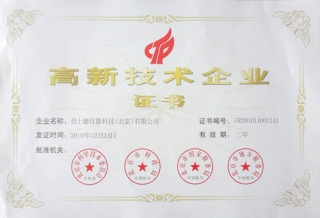 自國家實施新的《高新技術企業認定管理辦法》后,新標準對高新技術企業的認定條件提出了更高的要求,如對企業的自主知識產權、持續研發能力、研發投入等均有明確要求。同時,對科技成果轉化能力、資產與銷售成長性等指標也有嚴格的評價標準。經國家有關部門組織專家評審、公示等程序后,2010年12月,貝士德儀器科技(北京)有限公司順利通過高新技術企業認定,獲得高新技術企業證書。