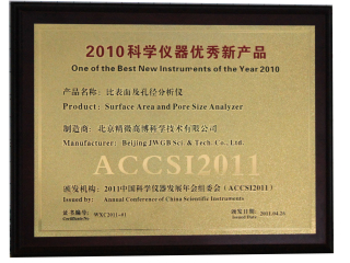 2011年4月26日,由中國儀器儀表行業協會、中國儀器儀表學會分析儀器分會、儀器信息網聯合主辦,中國分析測試協會協辦的中國科學儀器行業目前最高級別的峰會——“2011中國科學儀器發展年會(ACCSI 2011) ” 在北京京儀大酒店隆重召開。年會主辦方在大會現場對“2010中國科學儀器優秀新產品”舉行了隆重的頒獎儀式。精微高博獲物性測試和光學儀器類“2010科學儀器優秀新產品”獎,表明精微高博的高性能比表面及孔徑分析儀得到國內權威機構的普遍認可,達到了國內領先水平。
