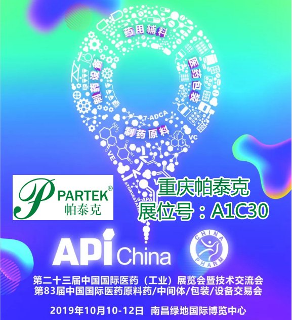 API China2019第83屆中國(guó)國(guó)際醫(yī)藥原料、中間體、包裝、設(shè)備交易會(huì)將于2019年10月10-12日在南昌綠地國(guó)際博覽中心舉行。粉體工程專家--重慶帕泰克機(jī)械設(shè)備制造有限公司應(yīng)邀亮相此次盛會(huì)。