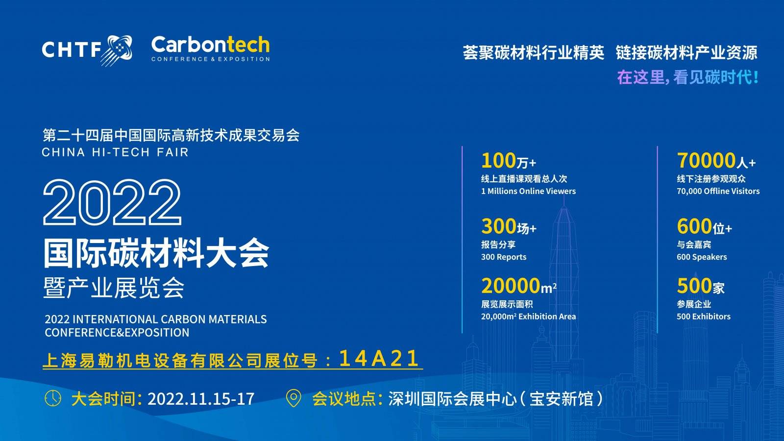 Carbontech 2022第六屆國際碳材料大會暨產(chǎn)業(yè)展覽會,將于2022年11月16-18日移師深圳國際會展中心(寶安新館)舉辦,展出面積20000平方米。上海易勒機(jī)電設(shè)備有限公司應(yīng)邀參展,竭誠歡迎各界人士蒞臨易勒機(jī)電展位交流。
