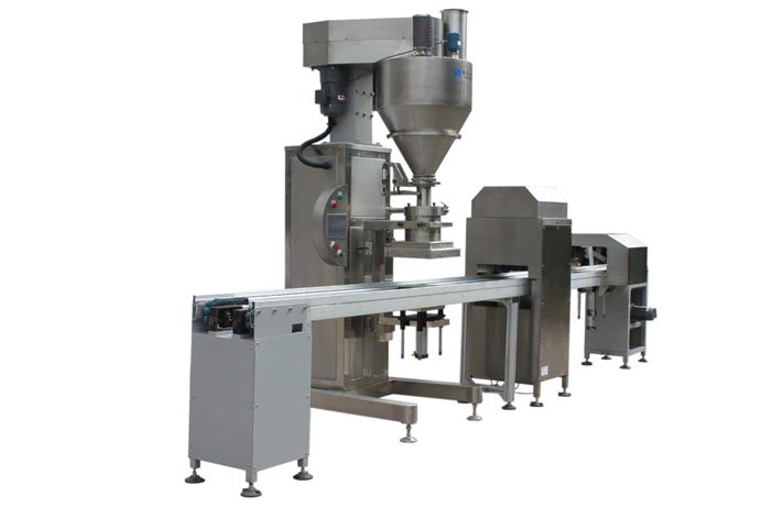 包裝系統設備整體夾袋及輸送機構上裝稱重傳感器,根據預先設定的重量進行多段速充填,充填時無揚塵飛出,充填螺桿由變頻電機驅動控制,性能穩定、扭力大、精度高,并配套封口機形成整個半自動流水線。