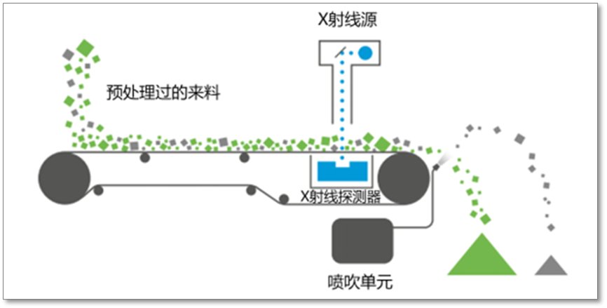 智能礦石預選拋廢技術是根據礦石中不同顆粒密度、形狀、厚度等物理特性的差異,通過X射線對顆粒進行逐一掃描后,形成不同灰度值的照片,系統根據圖像識別礦石從而分選出目的礦物顆粒的一種選礦方法。該方法多用于礦石的破碎階段,對有用礦物具有初步富集效果。發展智能預選拋廢技術可以提高資源的綜合利用率和提高入選礦石品位、減少礦石的入磨量和細粒尾礦的產出量,降低磨選成本、提升精礦品質,同時產生的廢石還可用于建筑材料,能顯著提高企業的經濟效益和社會效益,改善環境狀況、延長尾礦庫的服務年限。