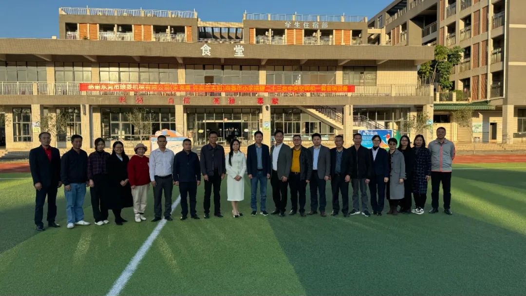 11 月 27 日下午,東莞市香市小學迎來了一份滿溢著溫情與大愛的珍貴禮物?,樍庵悄芗瘓F董事長宋克甫先生與夫人許應蘭女士,帶著對教育事業的深切關懷和對孩子們的無限愛意,慷慨捐贈了價值 39.5 萬元的中央空調與高級音響設備。那一刻,整個校園仿佛被一種無形的力量所包裹,那是愛心的力量,是社會責任與擔當的力量。