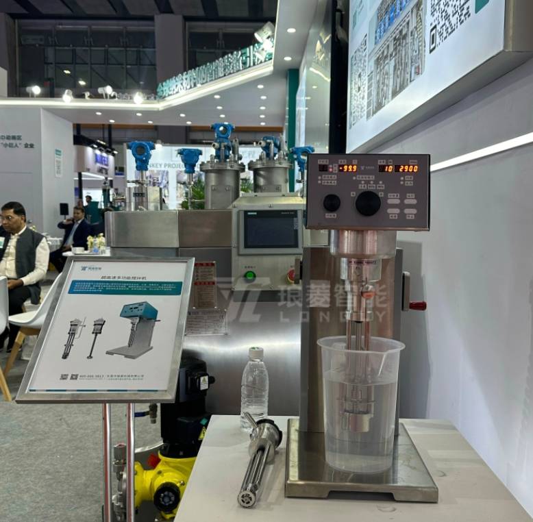 同時,在現(xiàn)場還一同展出了超高速多功能攪拌機(jī),該機(jī)型是一種集乳化、分散功能于體的高端實驗裝置。具備豐富的攪拌頭可供選配,轉(zhuǎn)速高達(dá)20000r/min(轉(zhuǎn)速會因攪拌頭的不同而有所差異)。此外,該實驗機(jī)還具有正轉(zhuǎn)、反轉(zhuǎn)切換功能。可以應(yīng)用于產(chǎn)品研發(fā)、檢驗原材料及驗證配方等。在這些強(qiáng)大的實驗型設(shè)備的助力下,學(xué)術(shù)設(shè)想不再受設(shè)備局限,為涂料技術(shù)革新筑牢根基。