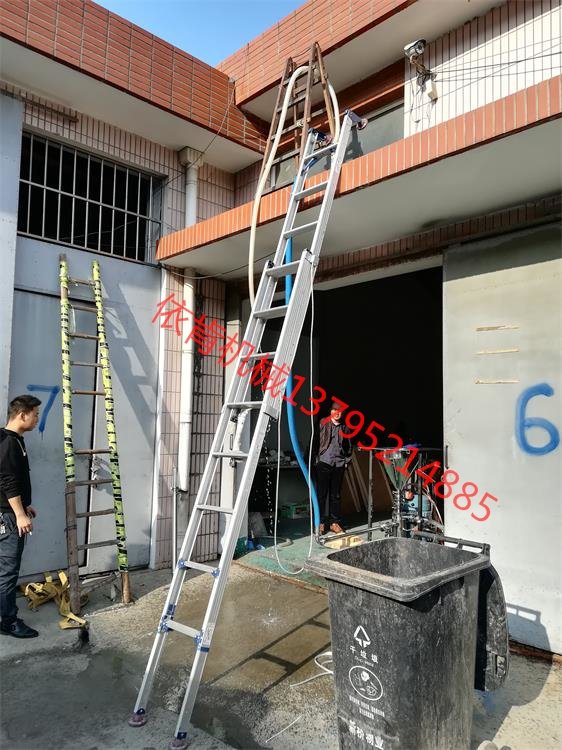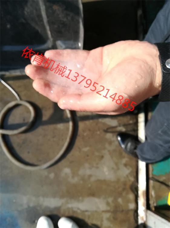 在驗收過程中客戶想知道ikn在線式連續粉液混合機揚程是不是能夠達到⑤米以上?粉料是不是可以連續進粉?在曹工與張工的協助下經過30min的準備工作,開始開機驗證。張工開啟冷凍機,待溫度降下來后,打開氣泵,打開變頻總開關,打開自來水閥門(由于現場條件有限,只能用自來水,這個自來水的壓力是很小的)點開進液氣動閥開始進水,30秒鐘自來水通過設備帶到⑤米高水管中出來,緊接著開始進粉體,出來的成品均勻通透,操作非常簡單,具體看下圖