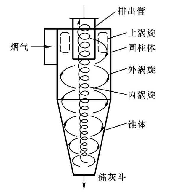 進入旋風分離的氣體,大部分沿著內壁,由上向下做外螺旋運動,此時旋風分離器的軸心處氣壓較低,錐體底部的一部分氣流會帶著細小的顆粒向上沿著軸心旋轉,形成內螺旋,到達排氣管后,沿排氣管排出。