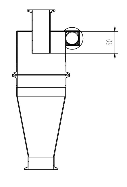 切向進口的旋風分離器結構簡單,容易加工制造,相對比較常。粉碎后的顆粒和氣體的混合體沿著切向口進入除塵器后,氣流大致會出現兩種情況:一是大部分氣流和顆粒的混合體會由于重力作用,會以10°左右傾斜角,向下做螺旋運動。顆粒在旋轉運動過程中,因重力會不斷下落;二是小部分氣流沒有馬上螺旋運動,而是沿著旋風分離器的徑向方向撞擊到分離器內壁,這種直線運動會造成入口的氣流紊亂,本來應被收集的塵粒被裹挾到向上的排出氣流中而逃出分離器。
