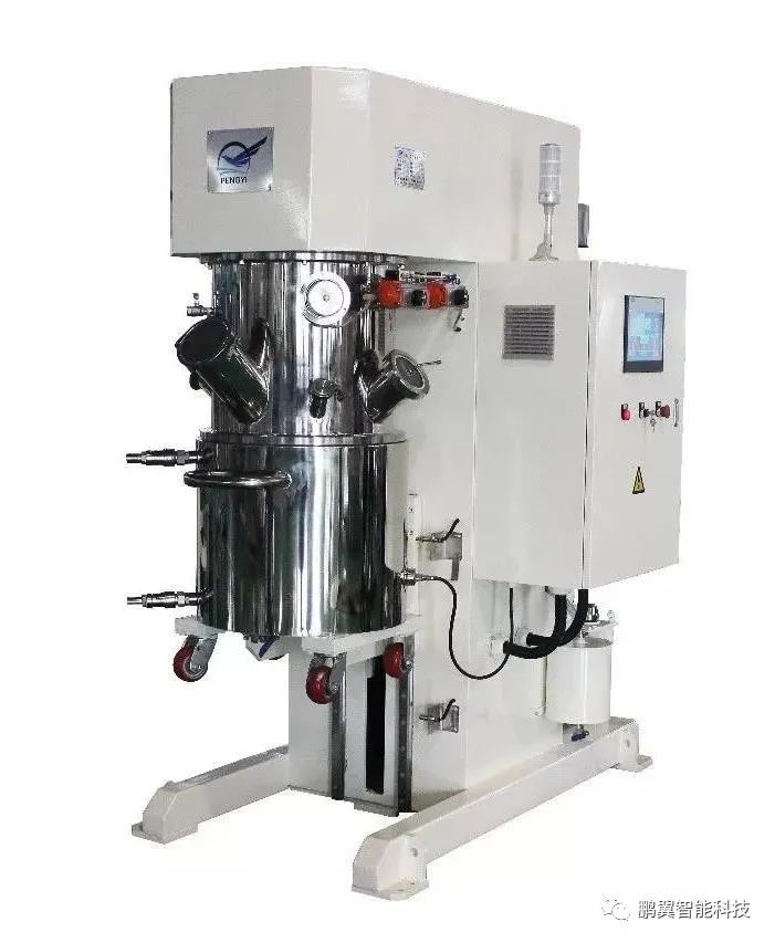 對于非常有挑戰性(高黏度)的配方,可以使用雙行星式攪拌機。該設備具有兩個或多個葉片,它們能繞著各自的軸旋轉,同時也會繞著混合容器旋轉。